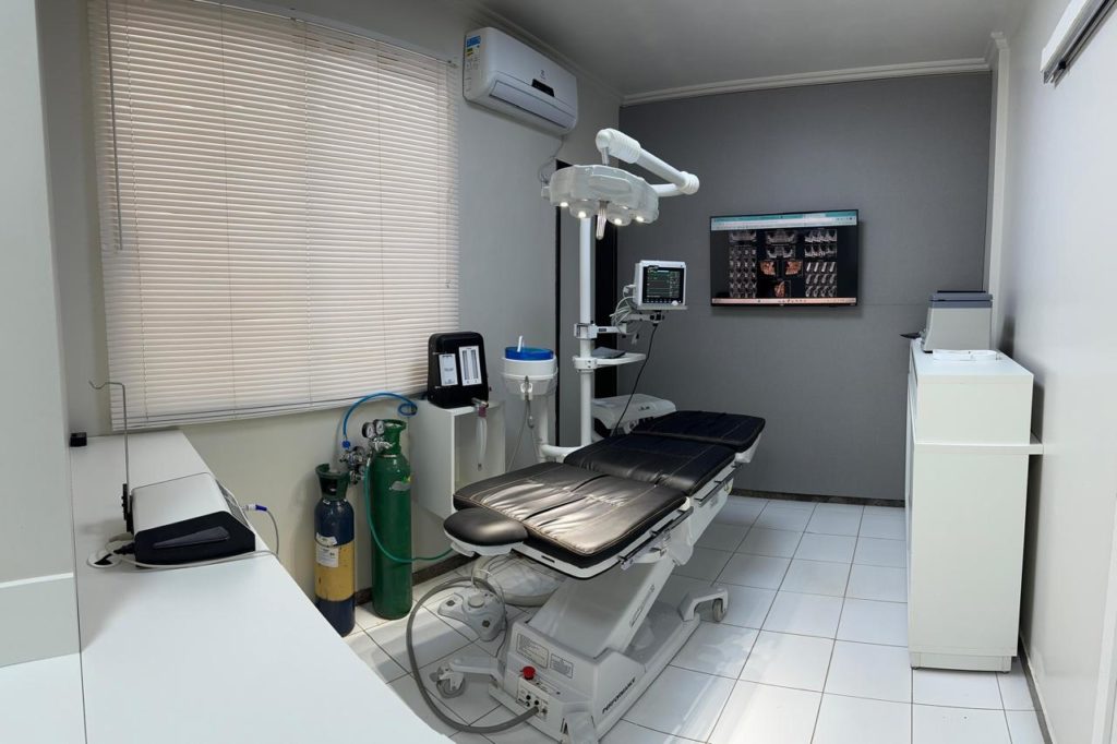 Disponibilizamos uma sala especialmente preparada para os procedimentos de implantes, projetada para garantir o máximo conforto e segurança durante a cirurgia. Com uma cadeira cirúrgica que proporciona uma sensação de repouso, como se o paciente estivesse deitado em uma cama, aliada a monitores que acompanham constantemente a pressão arterial, a saturação de oxigênio e os batimentos cardíacos, asseguramos um ambiente controlado e tranquilo. Cada detalhe é pensado para que o paciente se sinta seguro e acolhido, tornando a experiência ainda mais tranquila e livre de preocupações.